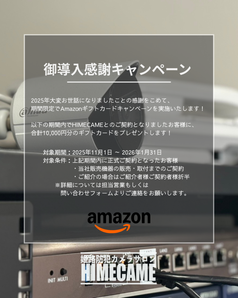 対象期間内に、HIMECAMEへ防犯カメラ装置一式の